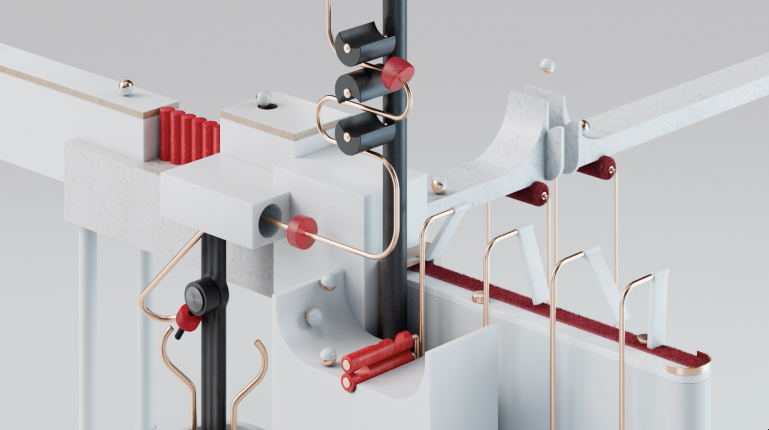 A series of beautiful, hypnotic looping eye candy by artist Andreas Wannerstedt that embody the idea of teamwork. They culminate in an intricate, seamless and almost impossible machine.